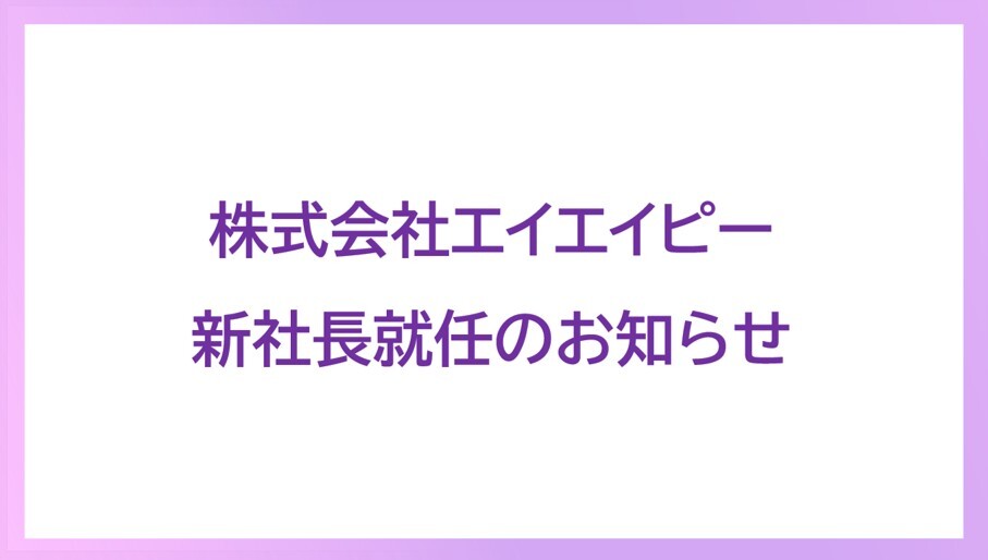 令和7年11月26日(水)に開催されました弊社の株主総会におきまして、鈴木俊永(前副社長)が、株式会社エイエイピーの代表取締役社長に選任され就任したことを謹んでご報告申し上げます。