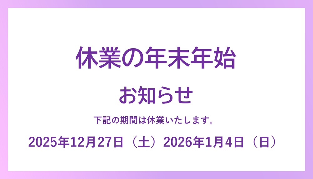 誠に勝手ながら、以下の期間を年末年始休業とさせていただきます。