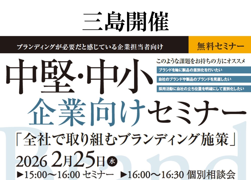 【参加無料 セミナー情報 三島会場】ブランディングセミナー開催のお知らせ