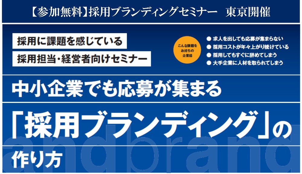 【参加無料 セミナー情報 東京会場】採用ブランディングセミナー開催のお知らせ