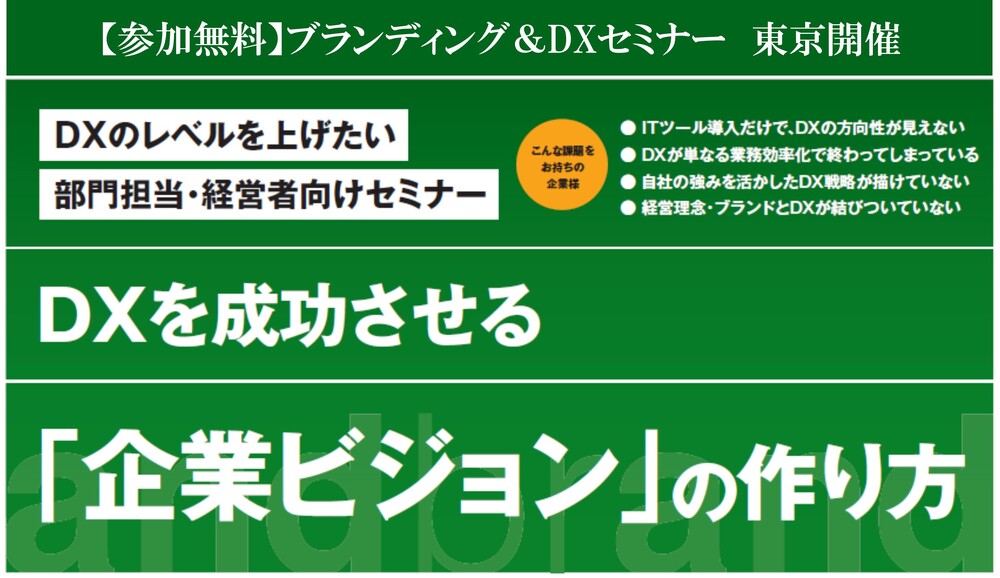【参加無料 セミナー情報 東京会場】ブランディング&DXセミナー開催のお知らせ