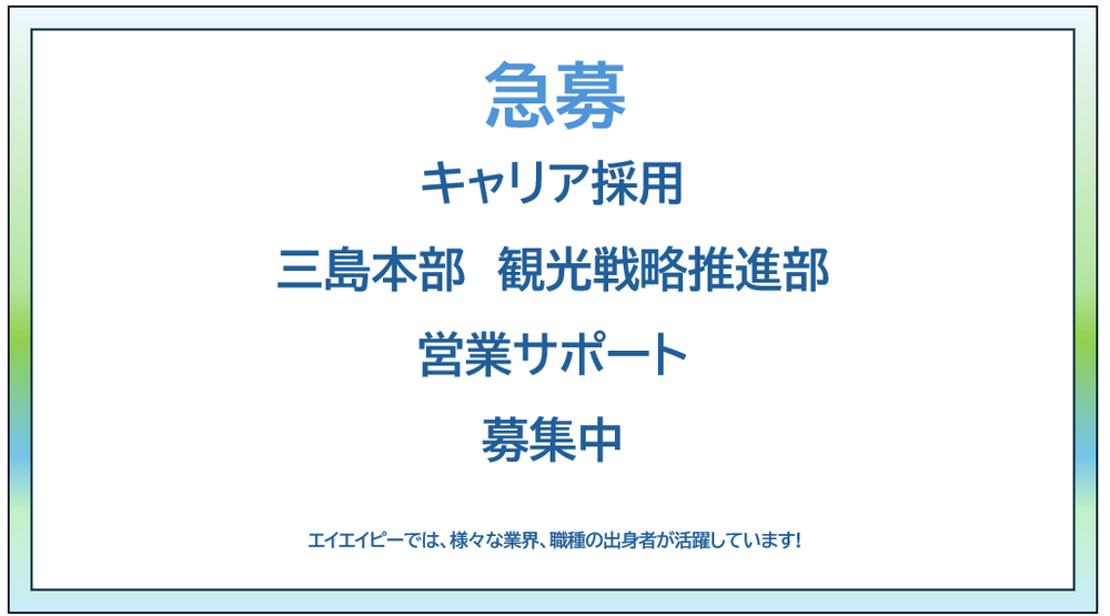 【採用情報 三島市/観光戦略推進部/営業サポート】