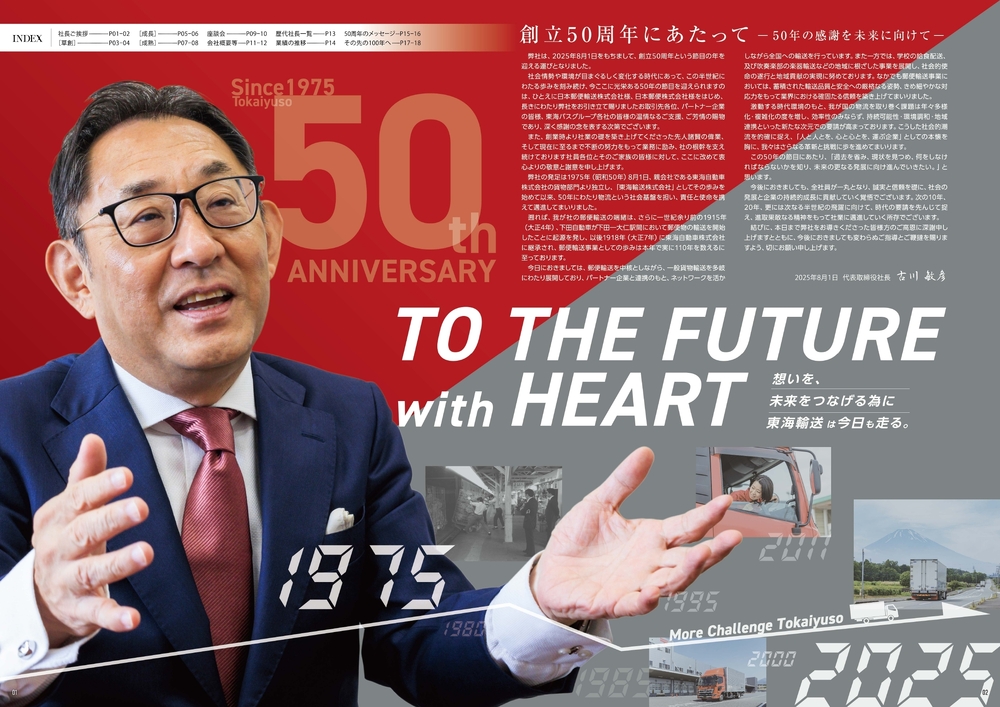 今回は、そのような私たちの暮らしの中に欠くことができない、郵便輸送を中心に、一般貨物輸送、給食輸送、医薬輸送などを手掛ける、東海輸送株式会社(本社:静岡県駿東郡清水町)様の設立50周年事業を、エイエイピーがお手伝いさせていただいている事例をご紹介します。