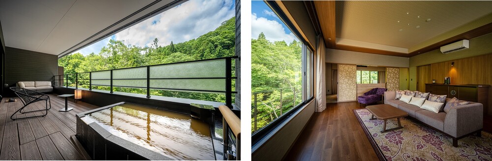 宮城県南部に位置する白石(しろいし)市の鎌先(かまさき)温泉は、開湯600年以上という歴史を持つ温泉で、「奥羽の薬湯」として知られており、かの名将 伊達政宗や伊達家の重臣 片倉景綱も湯あみに訪れたという、東北屈指の名湯です。その鎌先温泉で、約500年前に宿を開いたという一條家が代々守り続けてきた森の中に、「THE YUKAWA 一條支店」はオープンしました。その名の通り、湯川(ゆかわ)を望む、自然豊かな広大な敷地内に足を踏み入れた途端に、外界とは区別された特別な雰囲気を感じることができます。客室は4タイプ全11室。全てが湯川を望むテラスと露天風呂付のスイートルームで構成されており、ゆったりとした滞在時間を過ごすことができます。